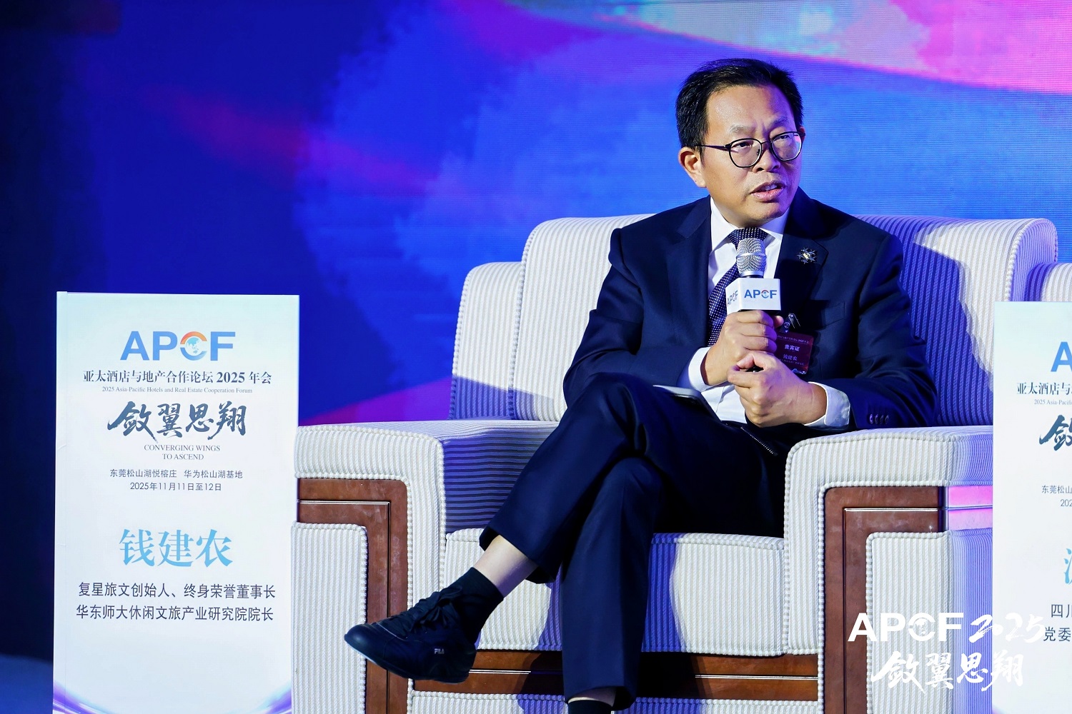 在“十五五”规划启幕与消费升级深化的双重机遇下,酒店与地产正经历从规模扩张到价值深耕的深刻转型,从复苏调整迈向重塑升级的关键阶段。存量资产优化与新质生产力培育并行,科技赋能与文化融合共生,行业发展既需沉潜蓄力的智慧,更需破局跃升的魄力。 亚太酒店与地产合作论坛2025年会(APCF)于11月11日至12日在东莞松山湖悦榕庄、华为松山湖基地隆重召开,集结谋局者、革新者、破局者……,俊彦云集,汇聚穿越周期的力量,敛翼思翔,布局亚太,进军全球。 ![]() 2025APCF由联合国开发计划署、世界旅游组织支持,亚太酒店与地产合作论坛组织委员会主办,锦江国际酒店股份有限公司、锦江全球采购平台、华为鸿蒙智家、万科酒店与度假村联合承办,中商文旅执行承办。 2025APCF开幕启动嘉宾 (左起:钱康、吴俊、张辉、游勇、冼锋、王民、江宁琳、丁长峰、刘锋、张建明、钱建农、包广明) 中国商业联合会会长王民,组委会主席、保利商旅党委书记兼总经理江宁琳,组委会监事长、万科酒店与度假村CEO丁长峰,组委会执行主席、中商文旅创始人兼CEO冼锋,全联旅游业商会常务会长、巅峰智业创始人刘锋,中国旅游饭店业协会会长、岭南商旅投资集团总经理李峰,四川省旅游投资集团董事长游勇,明宇集团董事长张建明,复星旅文创始人、华东师范大学休闲文旅产业研究院院长钱建农,华南理工大学建筑设计研究院院长、董事长、总建筑师倪阳,锦江国际酒店股份有限公司首席执行官毛啸,锦江酒店(中国区)党委书记、副董事长肖熙凰,锦江国际酒店股份有限公司副总裁、锦江全球采购平台CEO钱康,富力集团执行董事兼副董事长张辉,云南康旅酒店管理有限公司董事长包广明等300余位业界精英悦聚松山湖畔,洞察“省钱,赚钱,值钱”之道!在演变中的市场,谋发展、促改革、强管理、兴服务、优供给。 ![]() ![]() ![]() 敛翼蓄力 锚定“十五五”新航向 随着“十四五”收官与“十五五”开局,酒旅业作为国民经济支柱产业的战略地位愈发凸显。中国商业联合会会长王民在开幕致辞中指出,“敛翼”是沉潜蓄力的智慧,“思翔”是破局跃升的追求,行业需以场景创新激活消费潜力、以数字赋能提升运营效能、以协同合作拓宽发展空间,在高质量发展道路上稳步前行。 中国商业联合会会长王民致辞 组委会主席、保利商旅党委书记兼总经理江宁琳在开幕致辞中回顾了酒店与地产从“空间绑定”到“价值共生”的发展历程,强调破局关键在于构建“双向赋能”新生态:地产端从“空间提供者”转向“生态运营商”,酒店端从“服务供应商”升级为“价值放大器”,通过多元融合实现资产价值与社会价值双重提升。 组委会主席、保利商旅党委书记兼总经理江宁琳致辞 组委会轮值主席、锦江国际酒店股份有限公司首席执行官毛啸在欢迎致辞中说到:唯有与伙伴“资源共享、优势互补、风险共担”,方能穿越周期、行稳致远。 组委会轮值主席、锦江国际酒店股份有限公司首席执行官毛啸致辞 组委会执行主席、中商文旅创始人兼CEO冼锋发布行调报告,强调当前我国正处在推动高质量发展、构建新发展格局的关键时期。今年是“十四五”收官,“十五五”开局之年,是酒店与地产业从「规模增长」转向「价值重塑」的关键之年。过去粗放式的开发运营模式已然难以匹配新发展阶段的市场竞争逻辑,行业亟需以未来视角推动模式迭代与价值体系重塑。 ![]() 组委会执行主席、中商文旅创始人兼CEO冼锋发布行调报告 著名旅游专家、“中国旅游业十二五规划”专家组长、《中华人民共和国旅游法》特邀起草专家刘锋博士在主旨演讲《敛翼思翔:“十五五”背景下的酒旅新机》中,深度剖析了“十五五”旅游业高质量发展的三大核心方向:新质驱动——强内核,重在颠覆与创新,品质革命——立新标,重在精益与价值,跨界融合——破边界,重在共生与破圈;并强调旅游不仅有经济性、产业性,还有社会性、人民性;指出文旅发展,利国利民,上承家国情怀,下接人间烟火,满足人民对于美好生活的向往。 全联旅游业商会常务会长、巅峰智业创始人刘锋主旨演讲 华南理工大学建筑设计研究院院长、董事长、总建筑师倪阳则聚焦设计在地性与文化传承,探讨了酒旅空间向“生活方式聚落”转型的路径与前瞻。 华南理工大学建筑设计研究院院长、董事长、总建筑师倪阳主旨演讲 在“促活新消费”圆桌峰会上,复星旅文创始人、终身荣誉董事长、华东师范大学休闲文旅产业研究院院长钱建农指出,后疫情时代的休闲文旅消费已从“流量红利”转向“价值深耕”,“十五五”期间的核心机遇在于“场景化创新”与“体验式消费”的深度融合。 复星旅文创始人、终身荣誉董事长、华东师范大学休闲文旅产业研究院院长钱建农主持【圆桌峰会1】促活新消费 四川省旅投集团党委书记、董事长游勇则聚焦区域协同发展,认为川渝地区文旅产业应打破行政壁垒,构建“资源共享、市场共建、品牌共塑”的一体化发展格局。 四川省旅投集团党委书记、董事长游勇发言 香港中文大学酒店及旅游管理学院教授黄志辉认为:酒旅投资的核心在于前置规划,需聚焦回报、风险与资本架构三大关键,破除“高风险即高回报”迷思,以精准风险管控与科学融资安排,筑牢财务可持续根基。 香港中文大学酒店及旅
